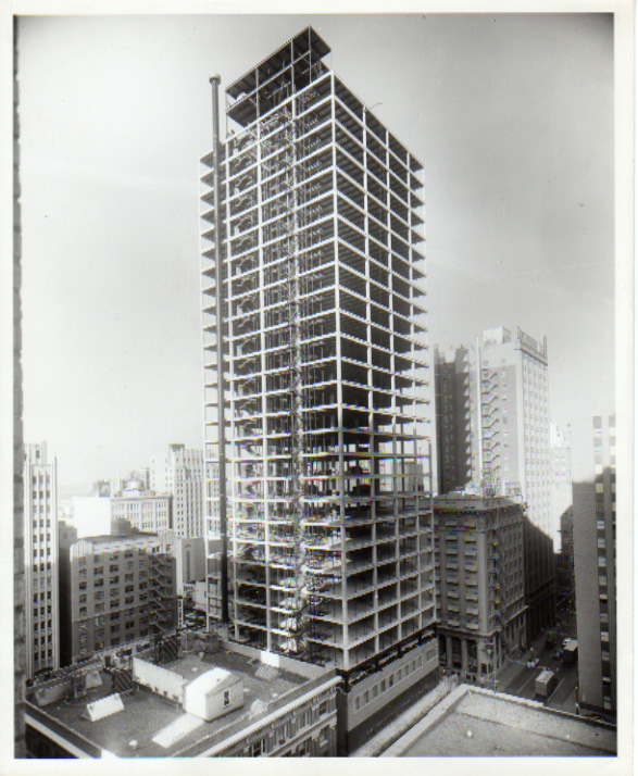large I-Beam columns encased in concrete. Large I-Beams also