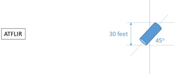 It's just an approximation based on what I see on the ATFLIR screen, see figure below. The exact angle doesn't change much to the end result since the whole exercise will only give you approximate values. That's why I rounded the numbers for the object size to 30 and 40.