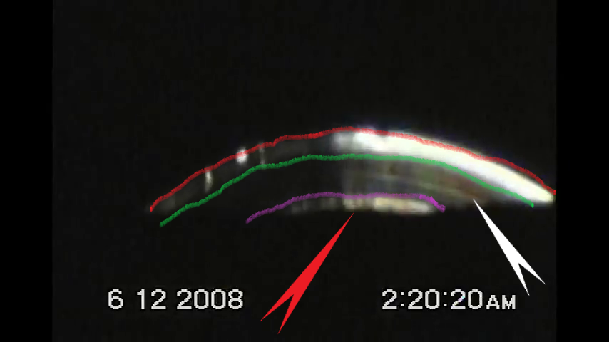 It follows that the two arcs that appear in each photo are separate objects. And while the UFO arcs have some variance in their appearance, the lower arc is always the same - thus the same object each time.