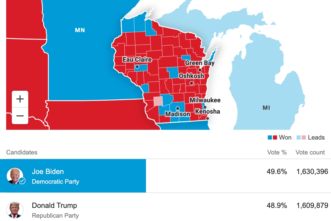 Most media outlets have called Wisconsin for Biden. This is the AP.