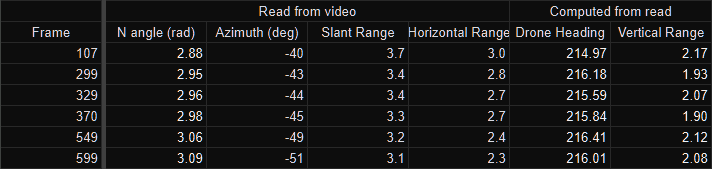 For the post impact Az values, I have located frames where the object is directly above the cross hairs, so that way I don't have to make FOV corrections.