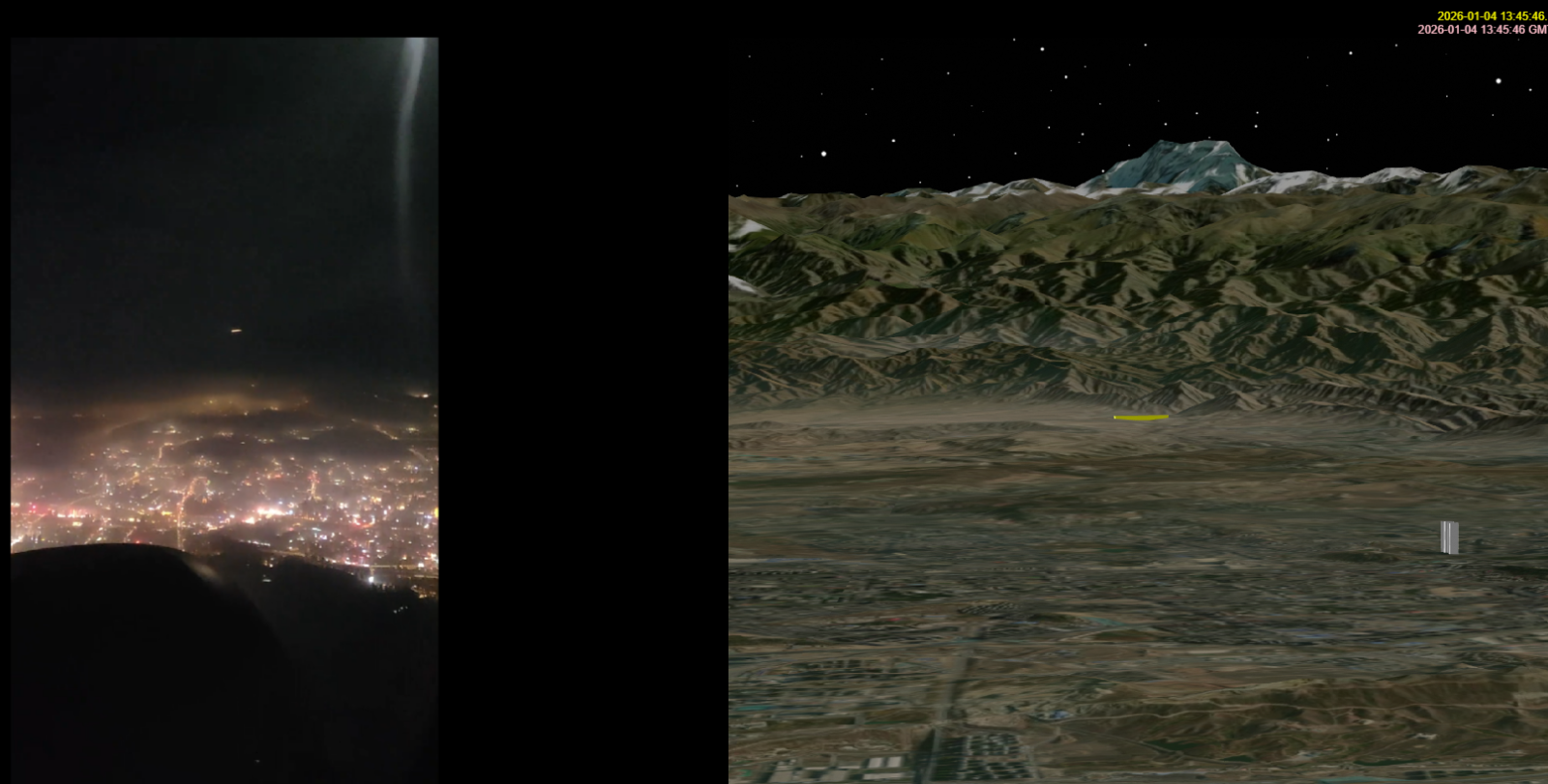 It doesn't seem credible to me that the Moon could be that much brighter than the city lights. And the color temperature seems too blue. (But my knowledge of video photography is limited.)