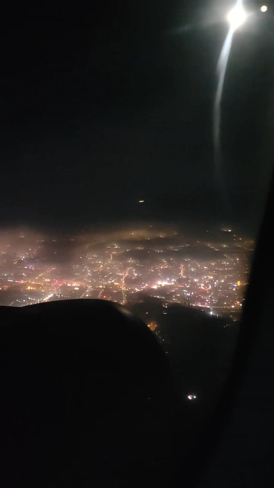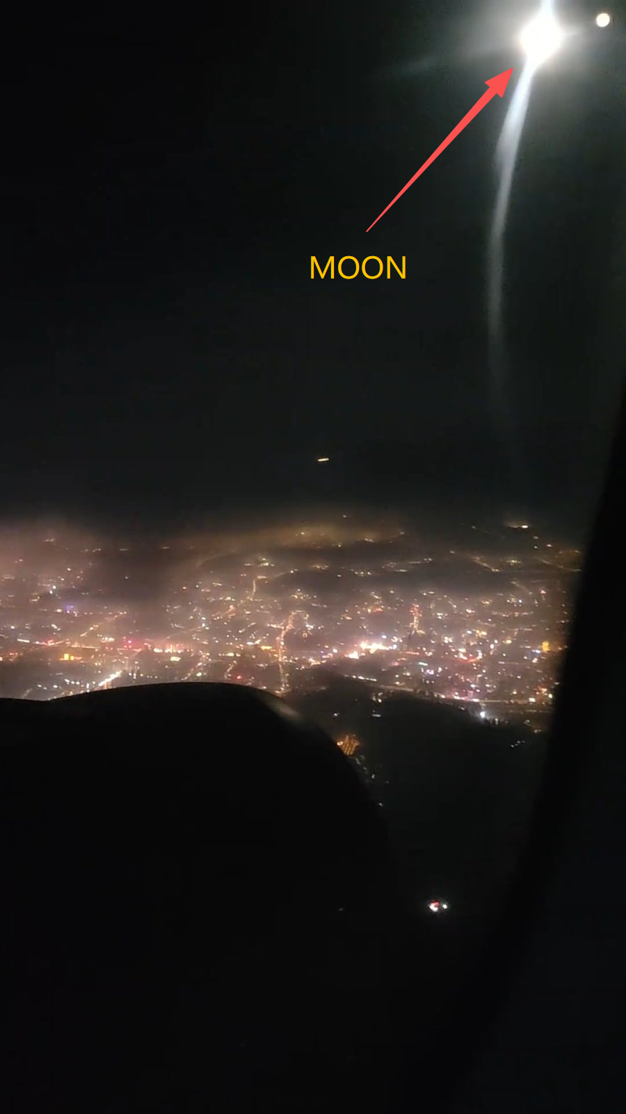 To me the color temperature and the brightness says it's the LED on the phone. The person recording was trying to record the Moon, but all he captured was reflections of his own phone light.