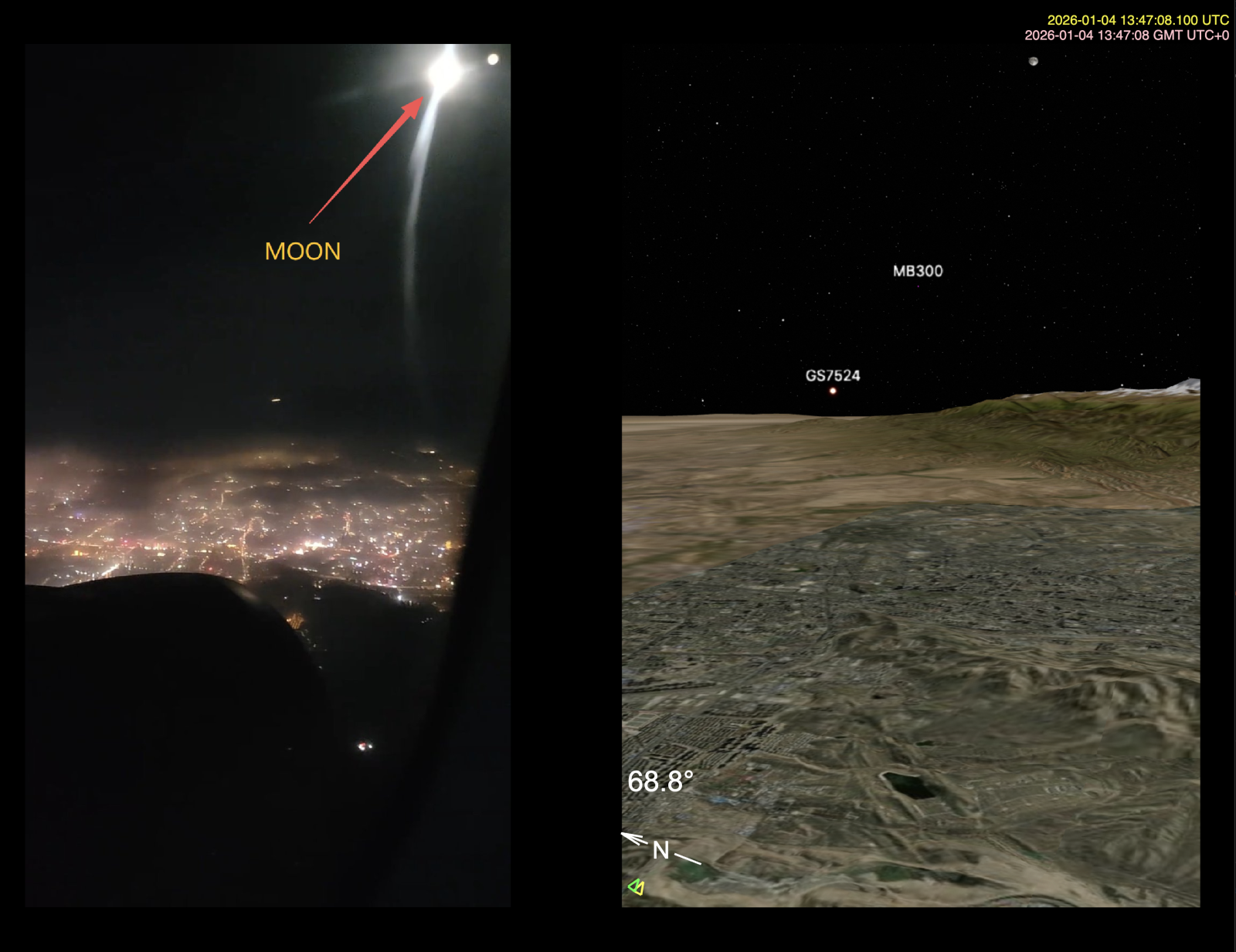 Correct: the bright object at top right is the moon, as confirmed in Sitrec.