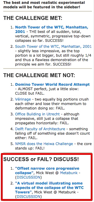 As I've mentioned before I've seen this same model used by the likes of AE911 to support their arguments. In my own opinion it's too "low" a tower in terms of stories to offer any real insight into the question of how the collapses could progress so rapidly and steadily through so many floors, despite very different initiation points.