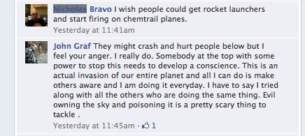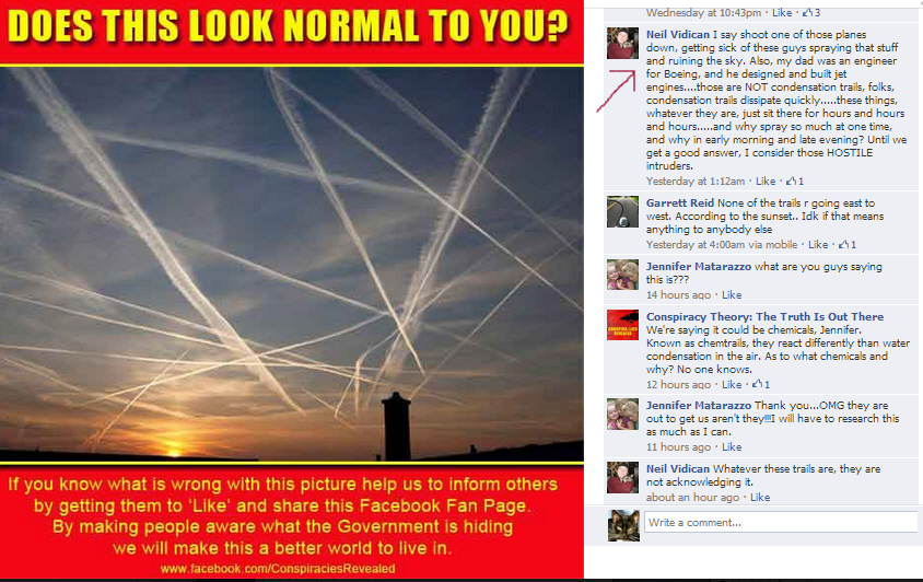 Chaps, please stop with the statements that might be taken as saying that all chemtrail believers are crazy. It's just going to rile people up.