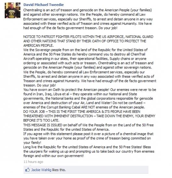 Joe Gettis Wake everyone up! Keep informing those you know and those you don't know. The spraying needs to stop NOW! Murder!Sunday at 3:17pm.