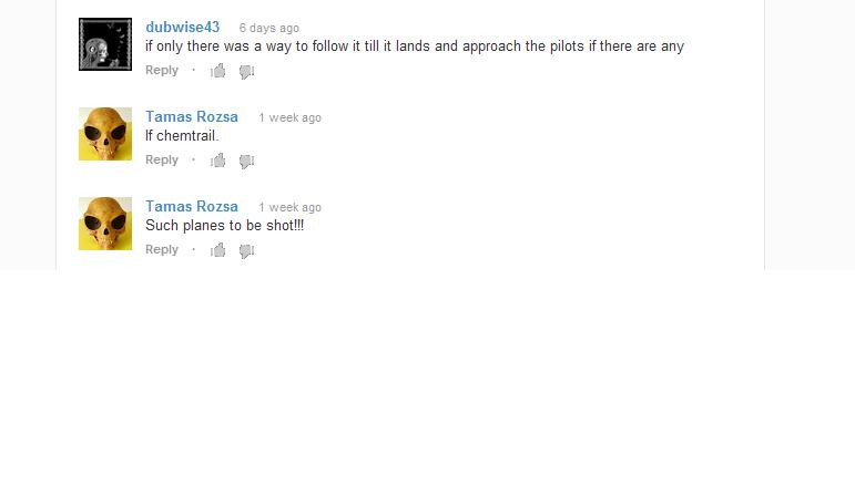 http://www.youtube.com/watch?v=dslvUyZaSpsExternal Quote:I have been advocating Poison dumping planes be taken out of the sky for a Long time. Your Polite version, is just That. I wont ask why you didnt edit in the sickness, disease & death of Innocent citizens around the globe from the Planes dumping poison barium, strontium & Aluminum along with MANY other Bio Viral Poison to all life on earth but I am with you & have been Called to Duty to Eliminate this. What your VERY Next step,.. & When?