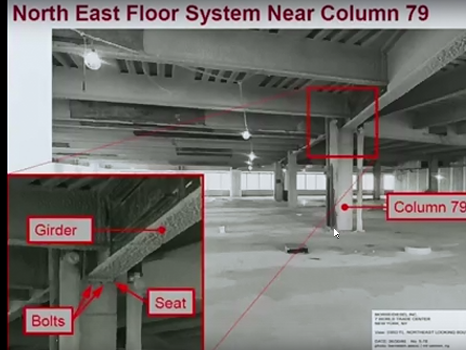 Hulsey's study demonstrates it. NIST says the girder moves west 6.25 inches with fixed eastern columns, no shear studs, no girder stiffeners, no side plates and no composite, thermally expanding concrete deck. Hulsey's model shows that when all these features are corrected, the expanding beams actually go in the other direction - east - and do not push the girder off its seat.