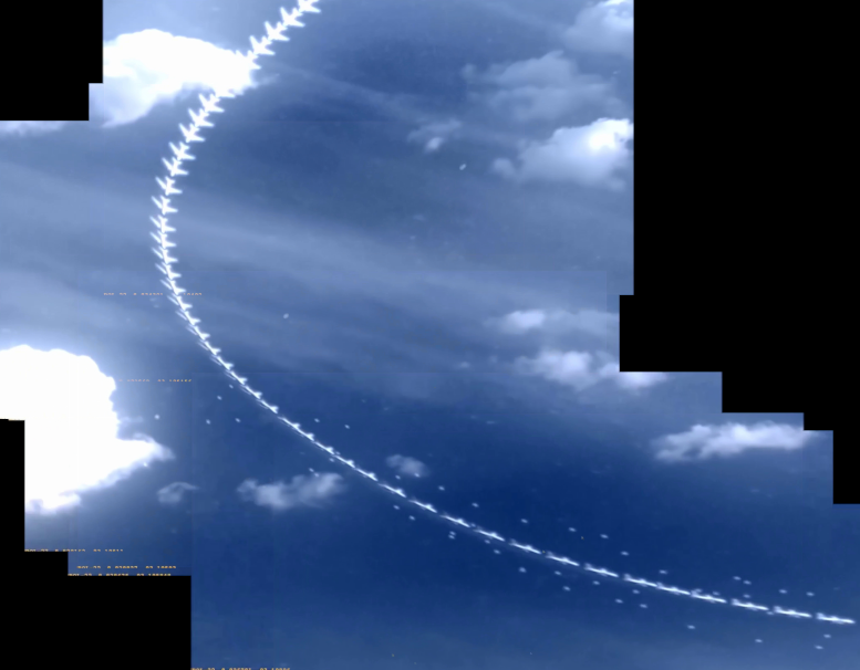 What are the limits of search-by-image, we are working with the assumption that if this is the method of creation at the very least a plane contrails and possibly spheres have been added to each frame. Each frame is also only showing a relatively small part of the much larger picture, which has maybe 4 or 5 largish distinct clouds over the whole video. We could maybe limit the search to really high-resolution stuff, since you could make an assumption that they only used a small portion of the whole picture (otherwise what was the photo of originally)