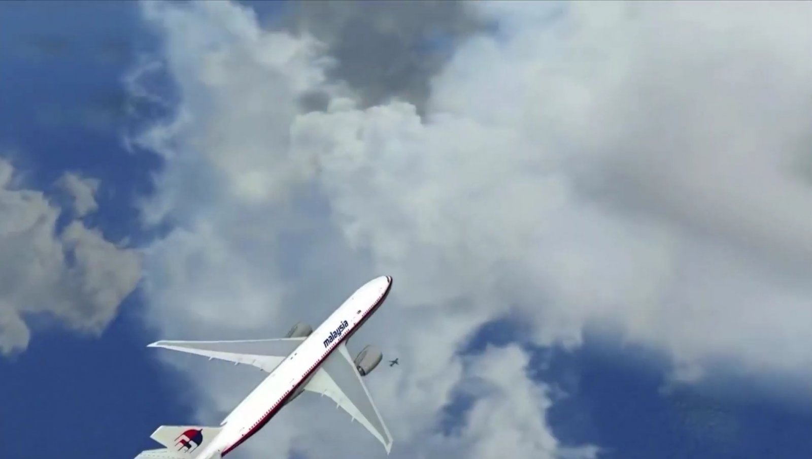 It could be against the sea.A Boeing 777 should fly at about 13km altitude max, while a LEO satellite would be flying at altitutes in the hundreds of km. I can't make sense of that picture in a way that the satellite isn't capturing the ground, unless that satellite is far away and getting a side view, while the path of the plane is of small eccentricity, suggesting a viewpoint closer to the horizontal axis. Someone already suggested that the viewpoint might be from the ground (sorry, chicken memory) and looking at the composite picture, that seems likely to me.