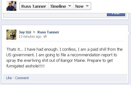 OK, this deserves some correction. It looks like you are saying that I have a Facebook account using the name jayuzi. Just because someone else with the name Jay who doesn't beleve in chemtrails posts something,you think that is me? Who told you that was me, Russ Tanner?