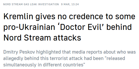 Seems the ball is now in the court of the Swedes and Danes, no doubt their foreign ministries and militaries will be asked about Hersh's claims. If their investigations of the pipelines damages revealed who was responsible, and it was not the US, naming the saboteurs will be the only way to clear the US. They will also be expected to provide evidence to support their claim of whatever nation they blame.