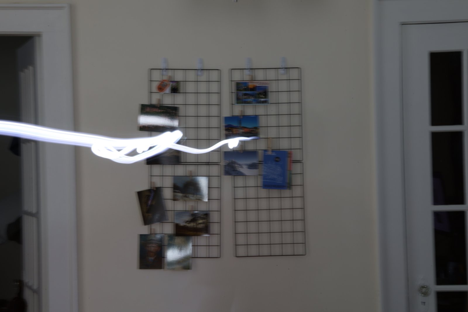 Here's a 30 second exposure in a darker room with the curtains cracked open, again with me standing directly in front of the camera waving a flashlight around for 5 seconds.