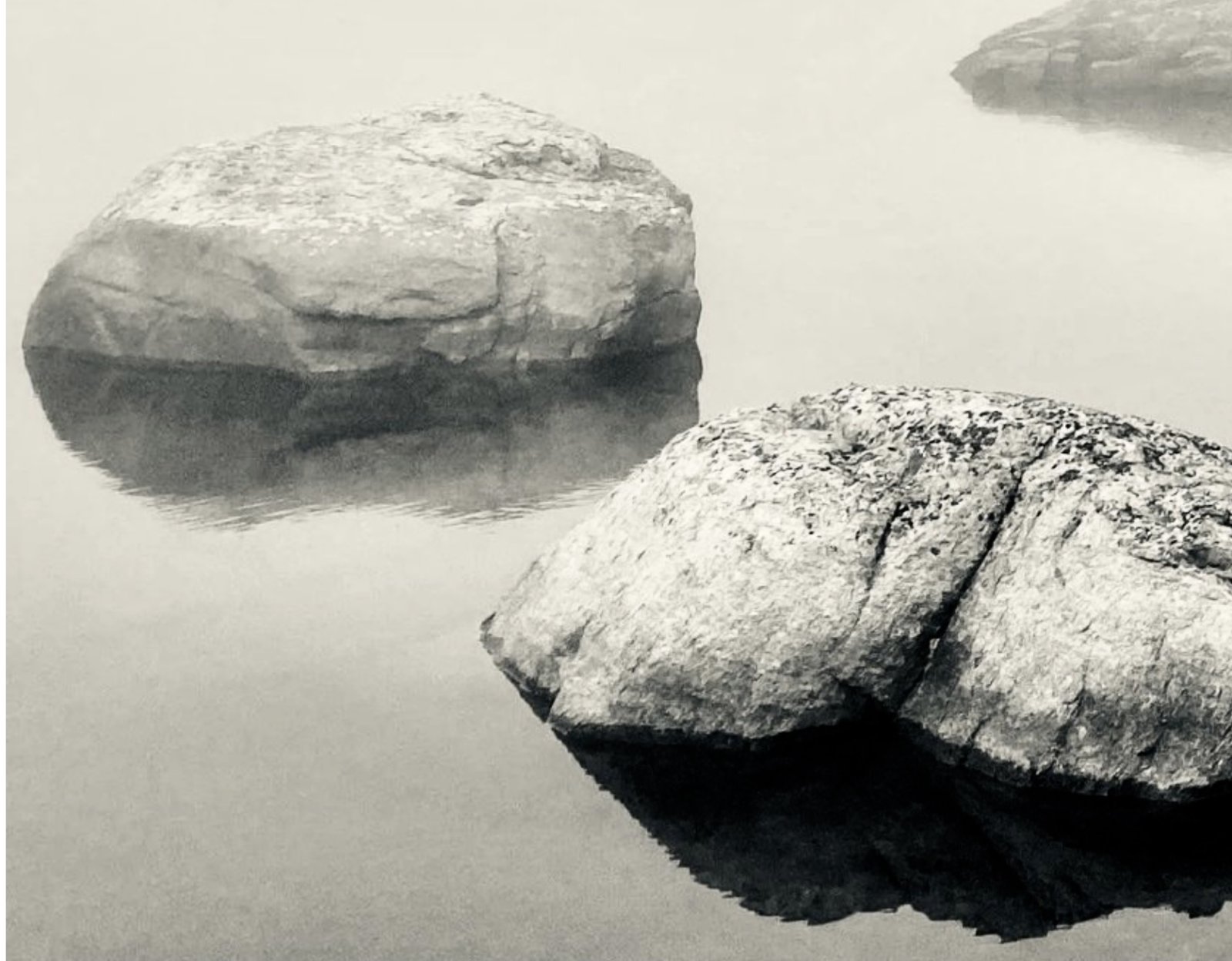 No, I simply don't accept that at all. You are showing close up rocks where clearly the angle of incidence on the water is considerable. This is in no way comparable to a distant rock where that angle is far smaller and the line of sight is more parallel to the water. With the latter I'd expect a good symmetry, especially on a calm surface....and there are literally thousands of examples on Google that show that. I would not expect such an image to have sticking out bits that did not show up at all in the reflection. Neither would I expect the reflection to be sizeably larger than the thing reflected, or to have light and dark areas completely different ( even if the general hue of the reflection is darker ).