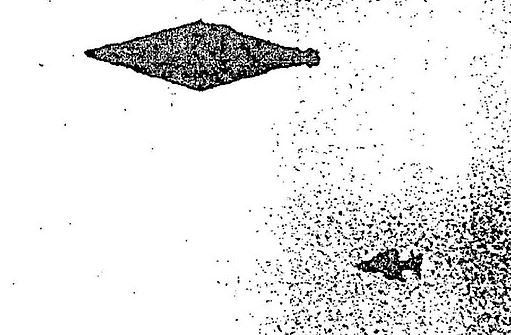 Then there's the fact that the six alleged photos are said to show the Harrier moving from right to left while the "UFO" remains fixed in the same spot. Given the size of the "jet" in the one picture we have, it must have passed through the scene incredibly fast.