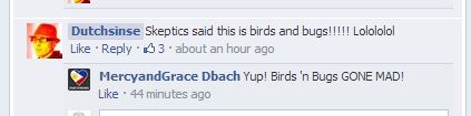 Nope, in fact I've gone out of my way to research and explain to him, with references of course, the various anomalies/AP/non-precip returns he presents as "haarp rings/pulses", etc. He's been mocking birds :p from the first time that biological returns on radar was explained to him. He doesn't understand the pretty pictures he sees, so anything that looks odd to him is a "haarp ring" and any skeptic is a "shill" screaming "birds and bugs".
