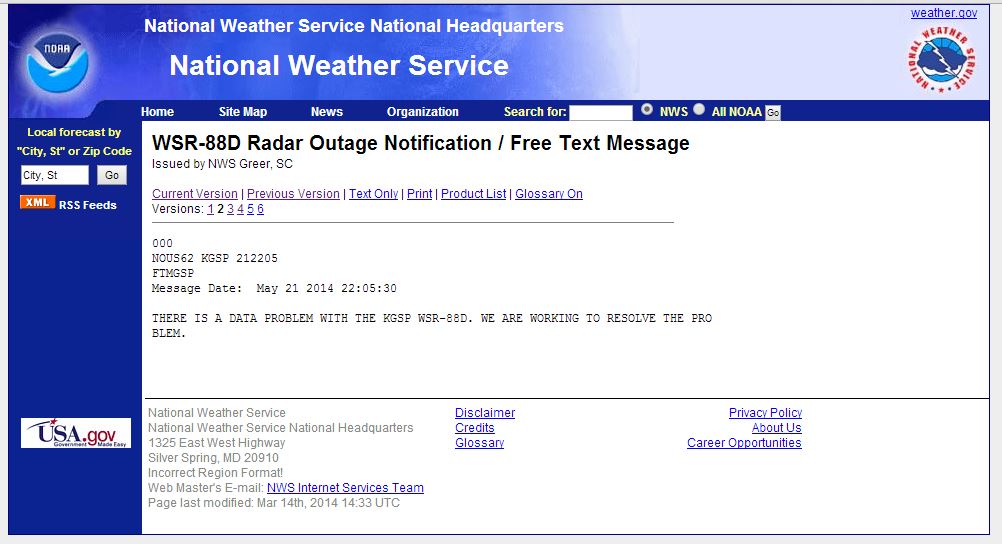 And a simple examination of the Greer, SC radar status page shows there was a malfunction noted at approximately the same time as Dutch's "pulse"
