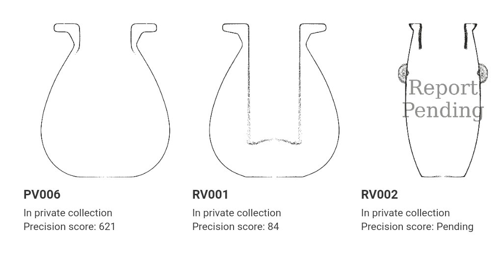 RV001 is an original vase, PV006 is a CAD replica of it.