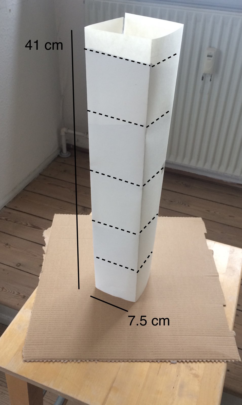 I did understand that, but I suppose I took the easier route to [nearly] the same aspect ratio. Your idea would take a lot of careful taping. Are you suggesting that a 150 x 20 x 20 cm paper tower (i.e., folding a tower out of sheet of paper 150 x 80 cm) would collapse under its own weight?