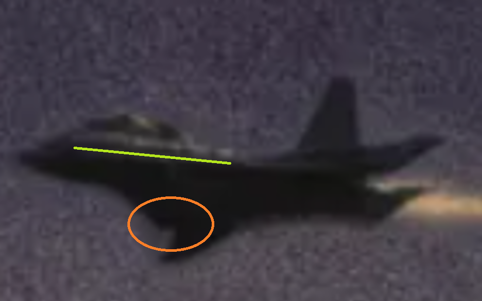 Unless it has a ridiculously deep belly-mounted air intake, the starboard (farside) wing appears to have a "glove" as per swing-wing (variable geometry) types (see in orange ellipse below). The port wing might also have this feature, but the glove extends, as an apparently very thick wing root, forward of the canopy (see green line below).