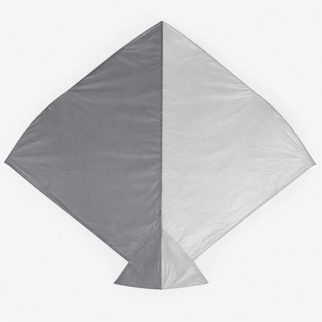 A kite would explain several details, such as the slightly uneven edges and the overall flat appearance. However, I'm having a bit of trouble understanding why the bottom half appears darker than the top half. A kite is, after all, quite flat. On the other hand, we could be looking at some kind of two-tone design, like this:
