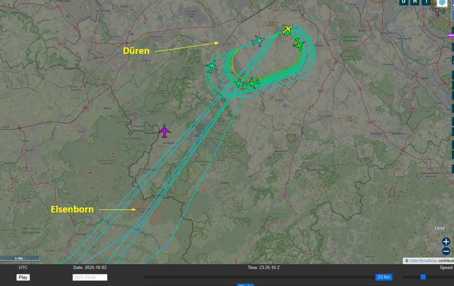 Lots of planes flew directly over Elsenborn and they orbited near Düren before landing at Cologne Airport around the time of the drone sighting.External Quote:[...]