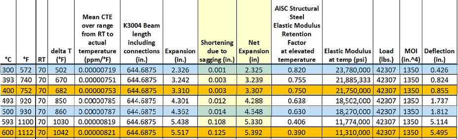 K3004 floor beam 53.57 feet – expands 2.325 inches at 300 °C