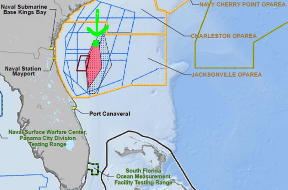 The JAX OPAREA extends almost to the South Carolina border, and as far south as Daytona Beach, plus a long way out to sea: