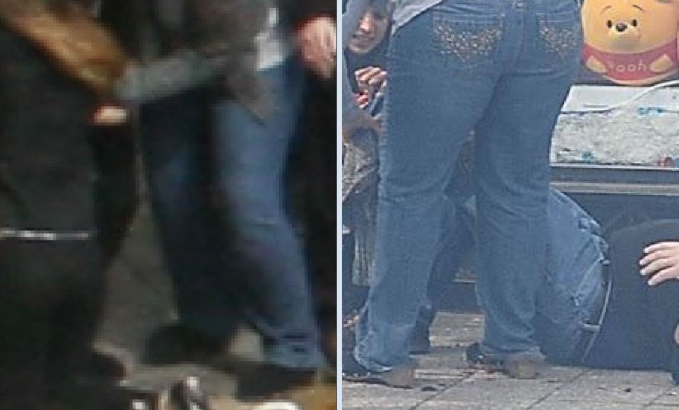 How do we know the legs of her jeans were rolled down to the top of her shoes at the moment of detonation?