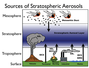 Conventional wisdom indicates (SO2) in the stratosphere comes from the burning of fossil fuels. . . . aircraft is felt to contribute around 1% I believe. . . .