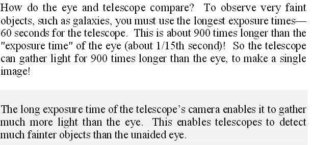 millions of times longer than the eye exposure equivalent (1/10th of a second, being conservative). So we can gather millions of times more light. But