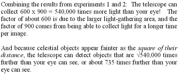 Assuming that a star is so far away that it is barely visible to the naked eye, we know that the Hubble telescope can make the star appear 127,551 times brighter. Does this mean that the Hubble telescope enables an observer to see the star if it were 127,551 times farther away? The answer is no. The Inverse Square Law says that the light that we receive from a star is inversely proportional to the square of its distance. According to this law, at that distance, the light of the star becomes 127,551^2 or 16,269,262,700 times dimmer, far too dim for us to see with the telescope.