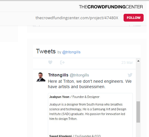 Am I the only one who finds the newest set of comments on the tritons campaign a bit off putting? A good example of "debunking gone wrong" with personal attacks - like accusing saeed of being an untrustworthy business partner because he has a tattoo o,O. I feel like the only thing that is achieving is discrediting the remaining debunk effort :/ Then again, as we approach the deadline we're going to have to shift from debunking to collecting evidence of fraud that can be used after their december deadline.