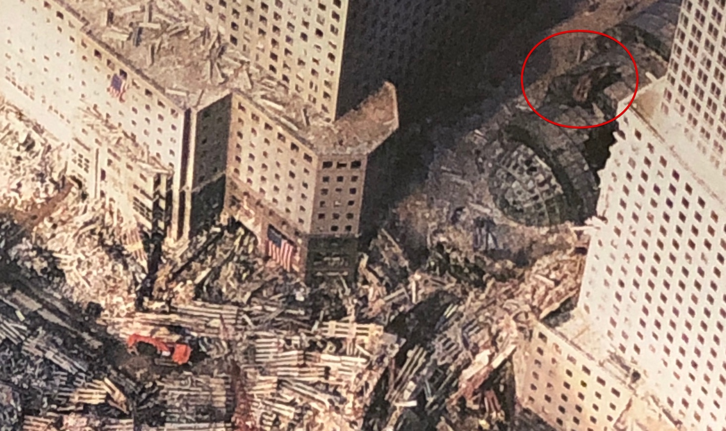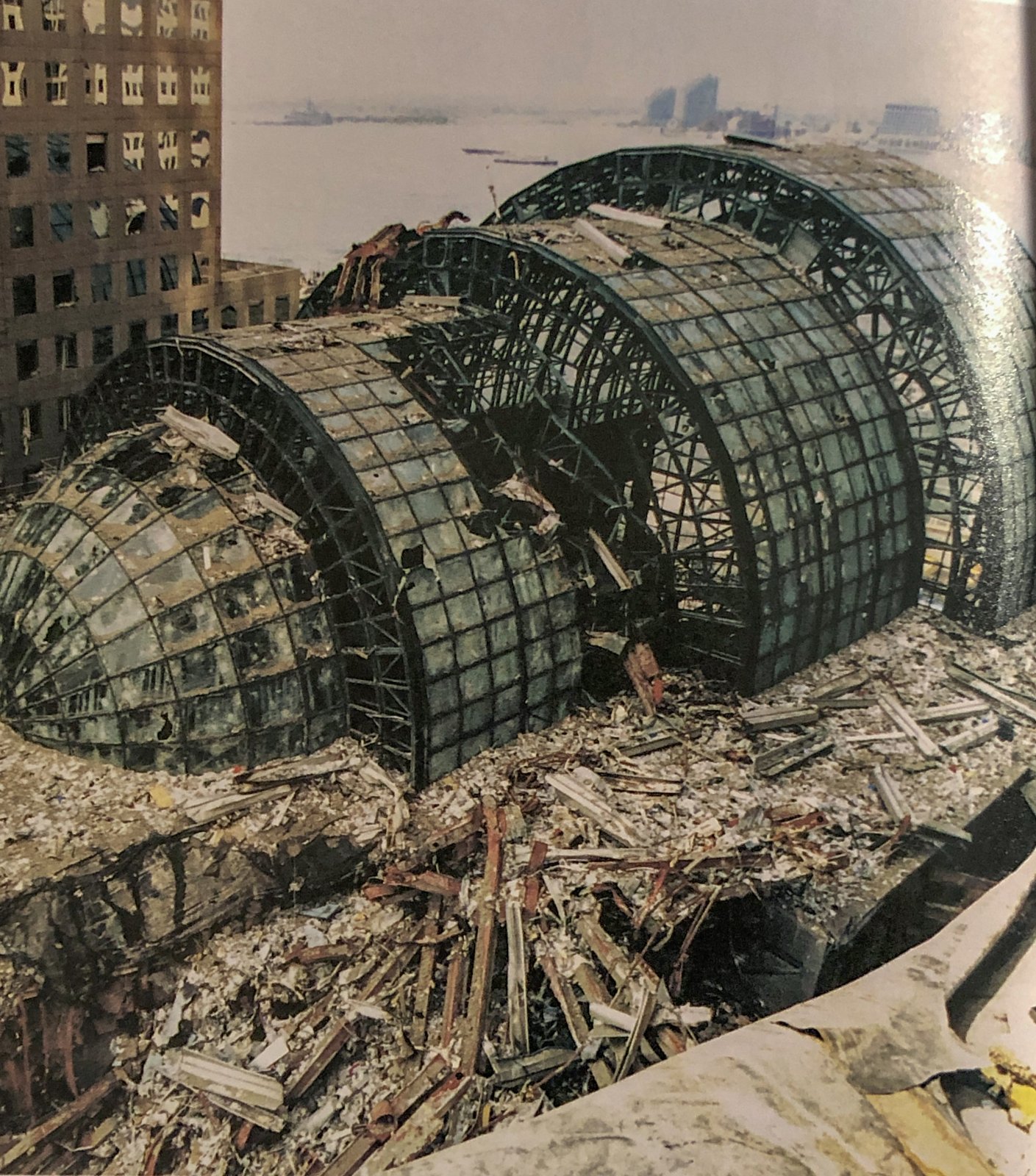 In the second image, a part of the WTC1 outer wall can be seen on the Winter Garden atrium