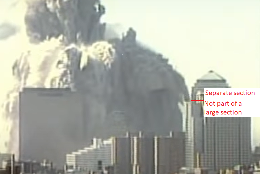 You suggest that it was a large framing section that pealed away from the building. That is incorrect. It was not part of a large framing section as can be seen in this photo: