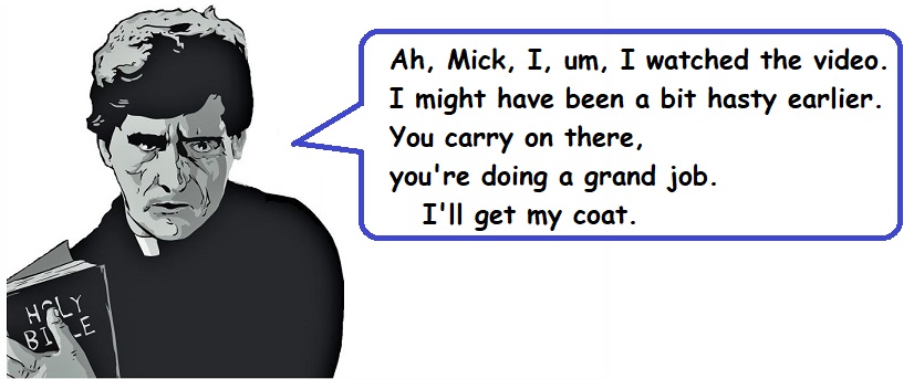 While praising the safe environment, the happy and attentive atmosphere and noting the undoubted efforts to make faith relevant in the contemporary world, some of the parish inspectors felt that the Sister Bernadette's Sunday School attendees might benefit from more traditional retellings of the Biblical stories on occasion.