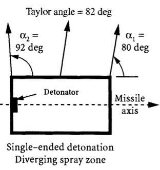 This image describes a warhead that has its detonator on the rear end, creating a forward diverging spray zone. The 9N314 has its detonator on the front end, thus creating a backward diverging spray zone.