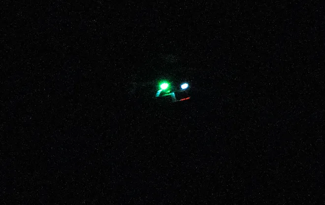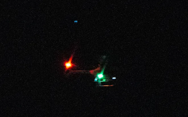 Five out of ten pictures in this piece are of a helicopter, pics 1, 3, 4, 5, and 8, pasted below. In some you can clearly see the craft, in the remaining cases, it can be identified by the color and position of the lights.