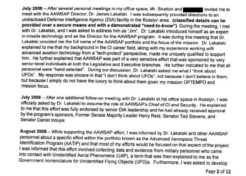 "They described it as a small but highly sensitive program focused on "unconventional technologies," and said they reported directly to the director of the Defense Intelligence Agency (DIA) and to Congress. Some of my past experiences working for Army intelligence had involved protecting high-end and sensitive aerospace technologies, so I just assumed that had made me a candidate."