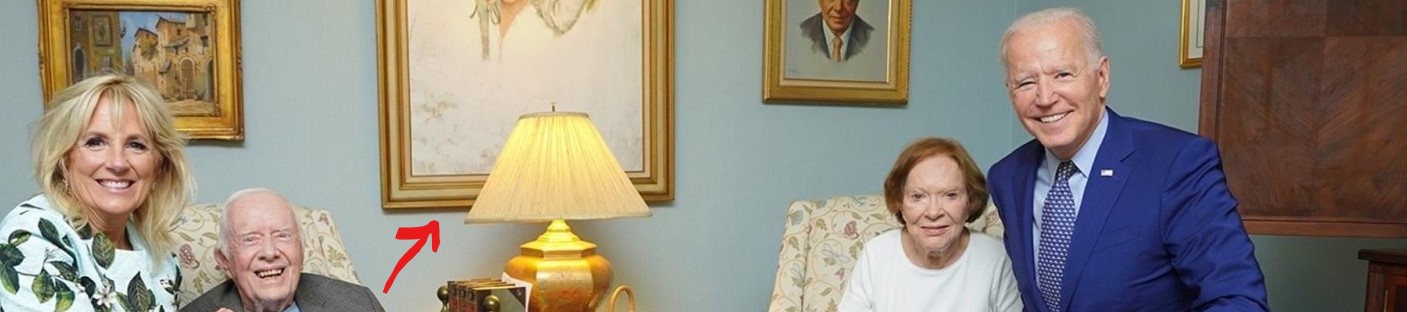 I looked at the original image as a result. Have any of you noticed President Carter's shoe size? That's another "distortion" caused by the viewpoint and wide angle. It could "prove" to conspiracy theorists that the "distortion" does not result from the Bidens being inexpertly photoshopped in. (Why would "the conspiracy" have succeeded in keeping their secrets so way if they employed professionals for faking images that couldn't survive in the advertising industry?)