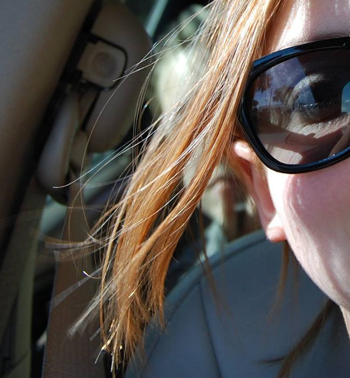 I doubt that very much, I must say.It is assumed by most that the girl's hair is blowing in the wind. But I don't think so. I think the hair is sticking out ( and the girl's head leaning to that same side ) because the car is swerving...maybe a sudden lane change. And she captures the exact moment when a load of shopping bags perched on the back seat ( the two 'fingers' being sticks of bread ) all fall over to the right side of the back seat. I agree with the idea posted above that the 'hair' of the alleged person in the back seat is actually the handle straps of the carrier bags.
