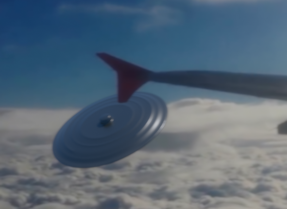 So I think this would actually require a lot less effort than rigging up cast iron pot lids, making a cardboard model wing etc. The scratched glass would be a lot easier to do practically though, because it would be very hard to generate accurate masks for fine detail like that.
