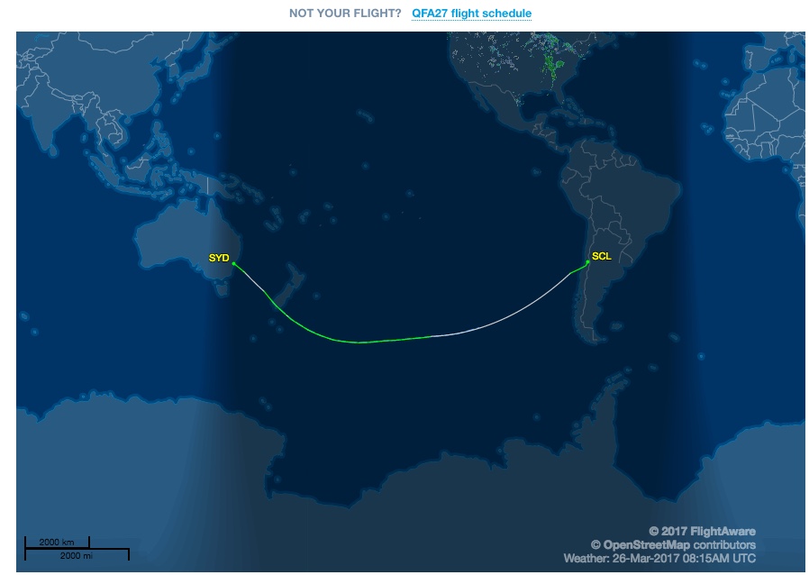 "We get tracked when we leave Sydney. We often fly over New Zealand where we get tracked and when we reach South America we get tracked again."