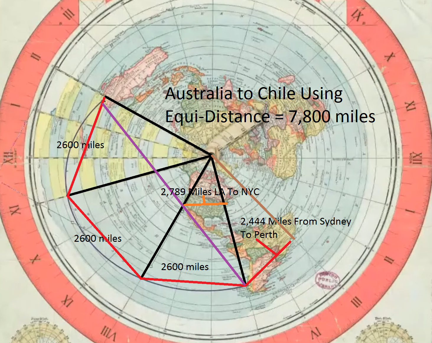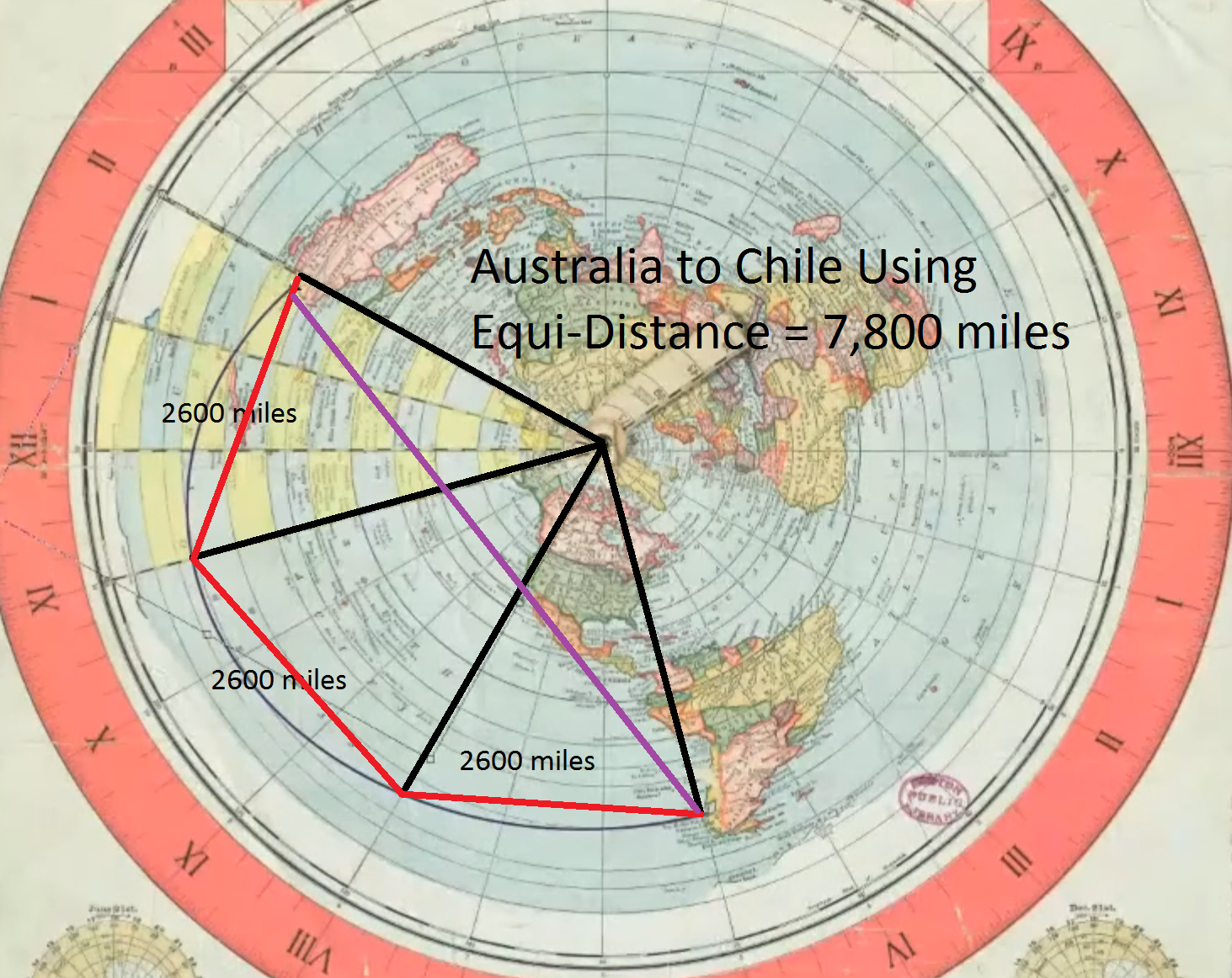 View attachment 26420 Well with all due respect I understand many of you have taken this flight and it has been a huge thorn in the side of the FE community, however the common end factor is the flight is too long and wouldnt have enough fuel. The actual flight is roughly 7,200 miles. Here is the distance on a FE map using proper Equi-Distance measurements. Your flying the same route minus the NASA created globe GPS nonsense. The purple line shows the FE flight path