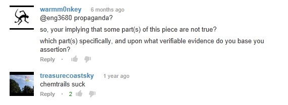 Personally, I see your comment as a propagandistic misattribution of a news article about contrails. What is the difference between your equating "chemtrails" with contrails and geoengineeringwatch equating "chemtrails" with ship tracks?
