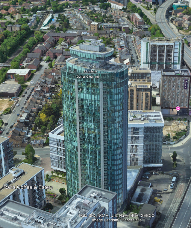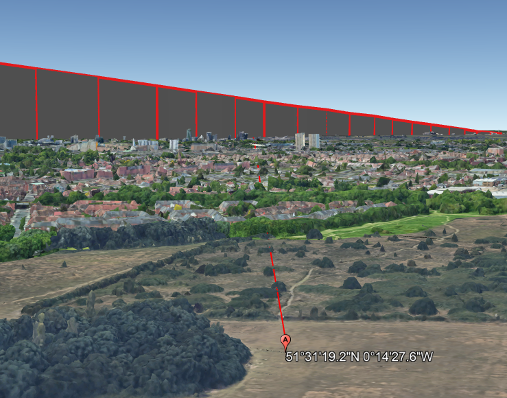 Returned with a better camera. Yes, you can clearly see the top of that building from there. Bizarrely my iphone camera couldn't make out the blue crane, which I think must have been lifting a piece of glass that was glinting in the sun.
