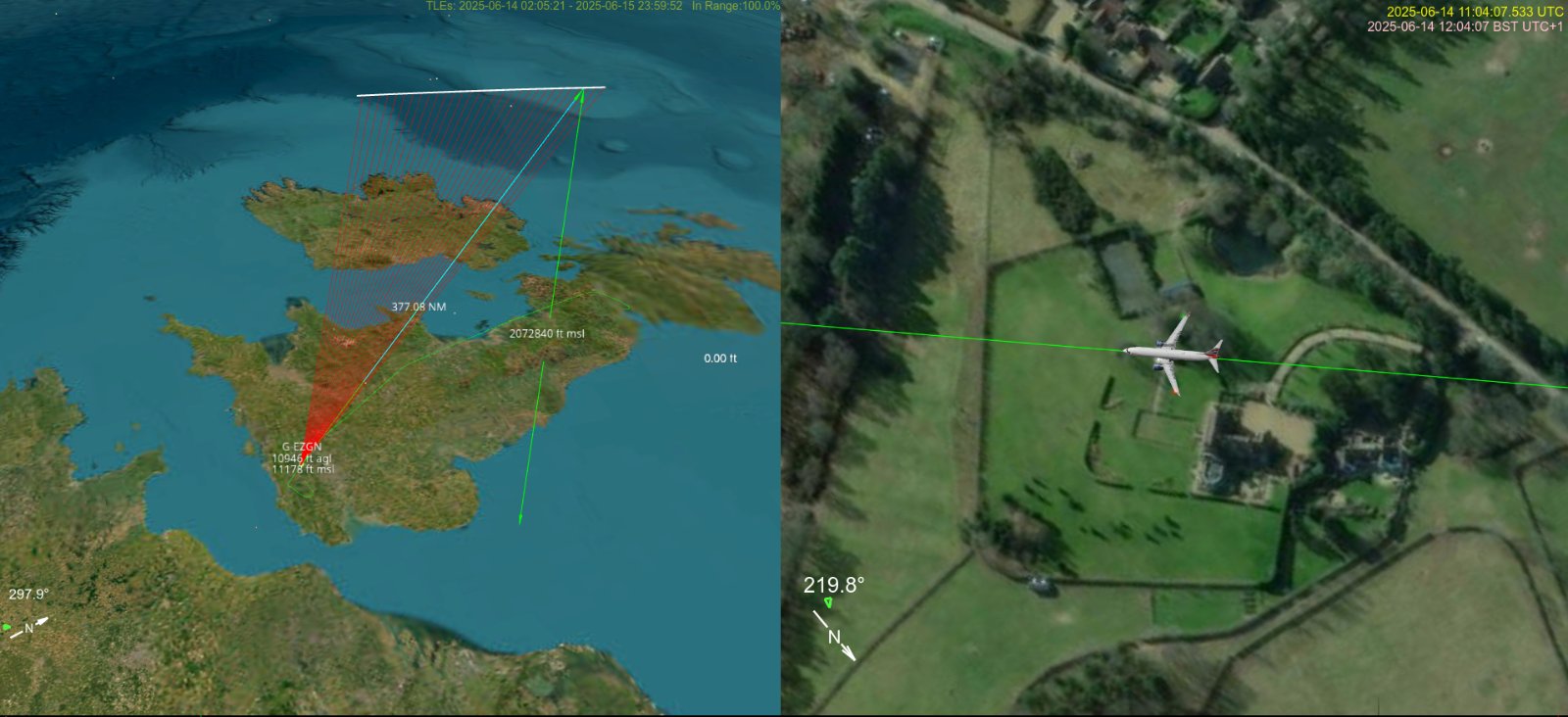 A plane flies past and is on ADSB but it does a loop and comes back into the FOV (towards the Starlink flares) and I can't make sitrec fit for the plane direction and lights...