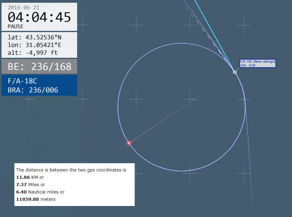 Flight simulations are fancy, but for this question of trajectory and distance from the fighter, I don't see what it could bring that simple geometry like this cannot. I'm not trying to defend one side here, but the maths are what they are, sorry. I may try to make a video to explain every steps of this calculation.