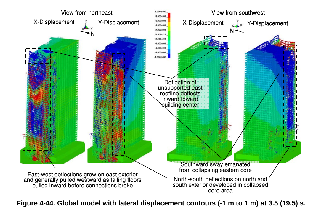 The NIST simulations suggest that one reason for multistorey freefall was was the entire structure of stories 7-14 shifting bodily northwards due to
